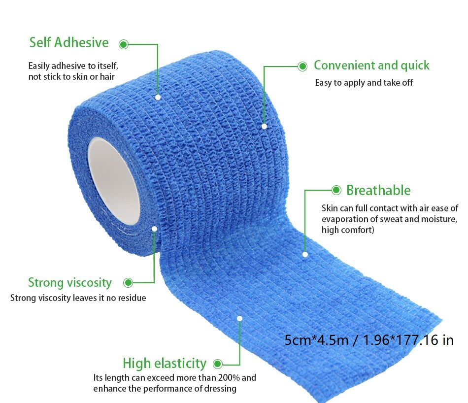 Latex အခမဲ့ Self Adherent Wrap သည်အလွန် စ. စွယ်စုံဖြင့်၎င်းတို့အားသင်၏ဆေးကုသမှုခံယူသည့်အရိုးများနှင့်ဆေးဘက်ဆိုင်ရာဆေးကြောခြင်းများကိုခြုံရန်နှင့်လုံခြုံစိတ်ချရသောဆေးကုသမှုခံယူရန်သင့်ဆေးကုသမှုကိရိယာတစ်ခုတွင်ပုံမှန်ပစ္စည်းအဖြစ်အသုံးပြုနိုင်သည်။ ၎င်းကိုနေ့စဉ်ဘ 0 နှင့်အားကစားများတွင်ဘုံကာကွယ်စောင့်ရှောက်မှုအဖြစ်အသုံးပြုနိုင်သည်။ Cohesive bandage သည်တိရစ္ဆာန်ဆေးကုသရေးဌာနမှအသုံးပြုသောဘုံကိရိယာတစ်ခုဖြစ်ပြီးခွေးများနှင့်ကြောင်များကဲ့သို့သောအိမ်မွေးတိရိစ္ဆာန်များကိုအလှဆင်ရန်နှင့်ချည်ရန်အသုံးပြုနိုင်သည်။ အဘယ်ကြောင့်ဆိုသော်ပတ်တီးသည်အလွန် elastic ဖြစ်နေသောကြောင့်လေ့ကျင့်ခန်းစဉ်အတွင်းပူးတွဲနှင့်အခြားဒေသများနှင့်အခြားဒေသများနှင့်လည်းချိတ်ဆက်နိုင်သည်။